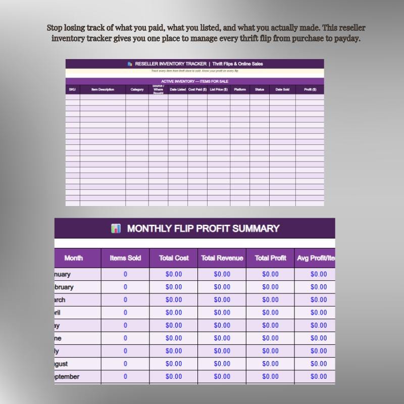 Stop losing track of what you paid, what you listed, and what you actually made. This reseller inventory tracker gives you one place to manage every thrift flip from purchase to payday.