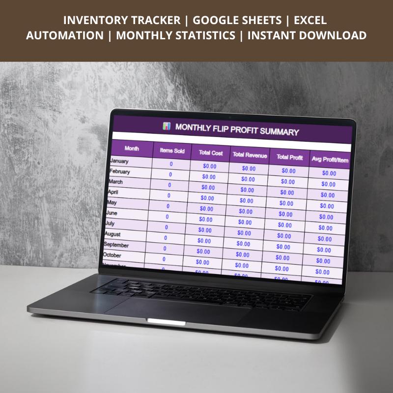 Enter your item, what you paid, your listing price, and the platform. When it sells, mark it Sold and the profit calculates itself. Track every month in the summary tab to watch your income grow.