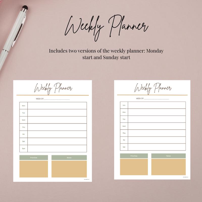 ✔ Weekly Planner (Sunday & Monday Start)