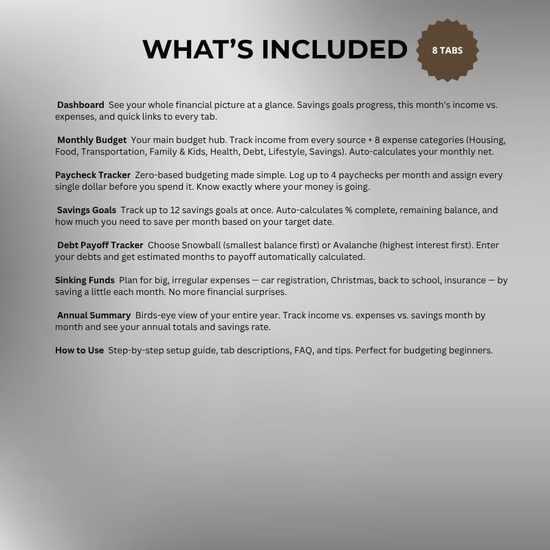 📖 How to Use Step-by-step setup guide, tab descriptions, FAQ, and tips. Perfect for budgeting beginners.