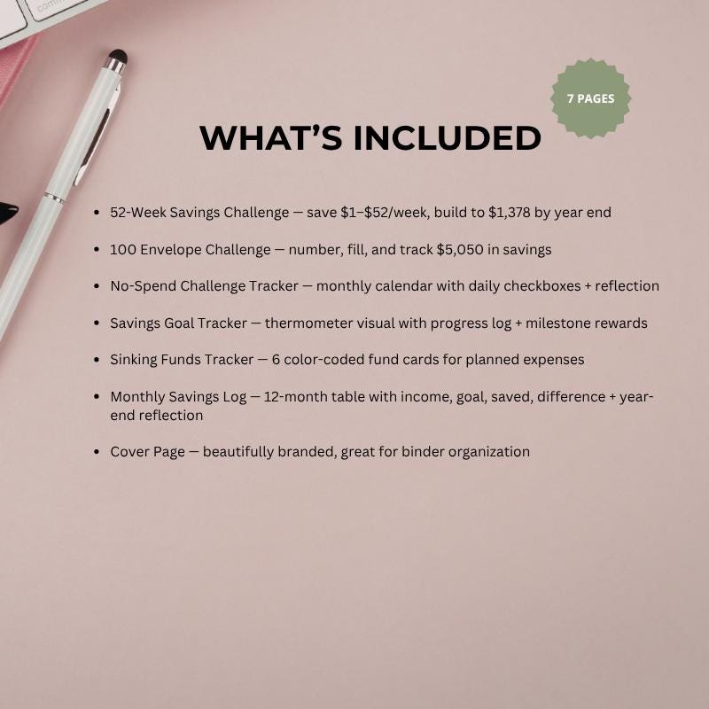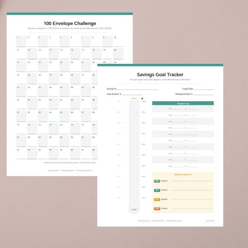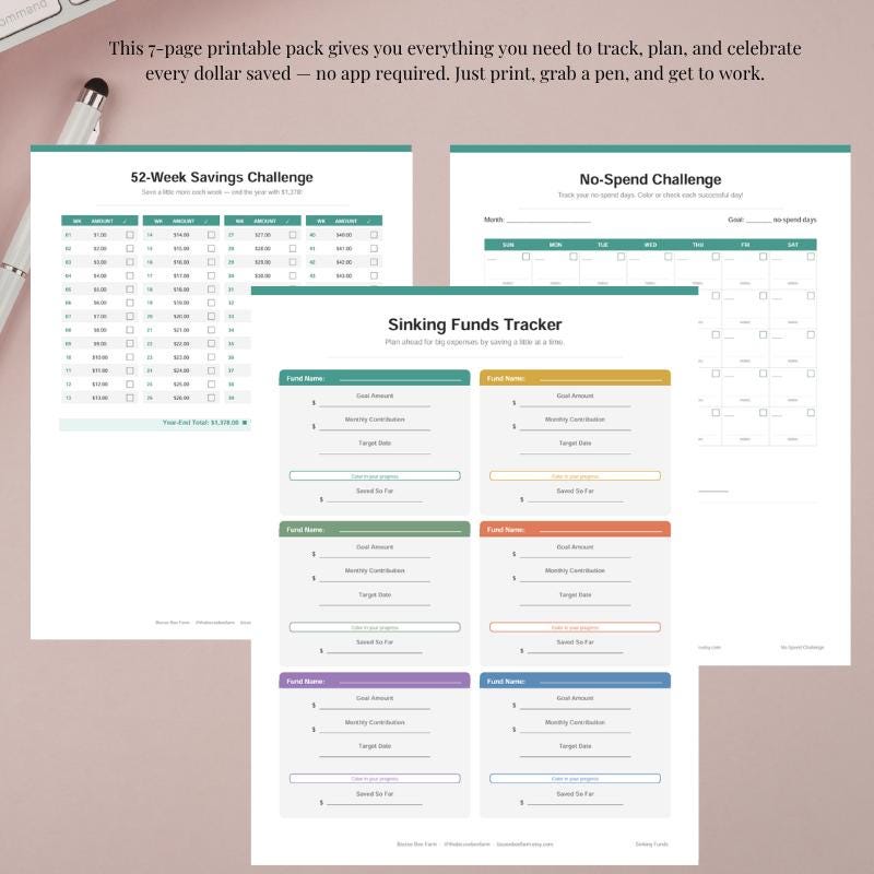 Ready to finally build your savings habit? This 7-page printable pack gives you everything you need to track, plan, and celebrate every dollar saved — no app required. Just print, grab a pen, and get to work.