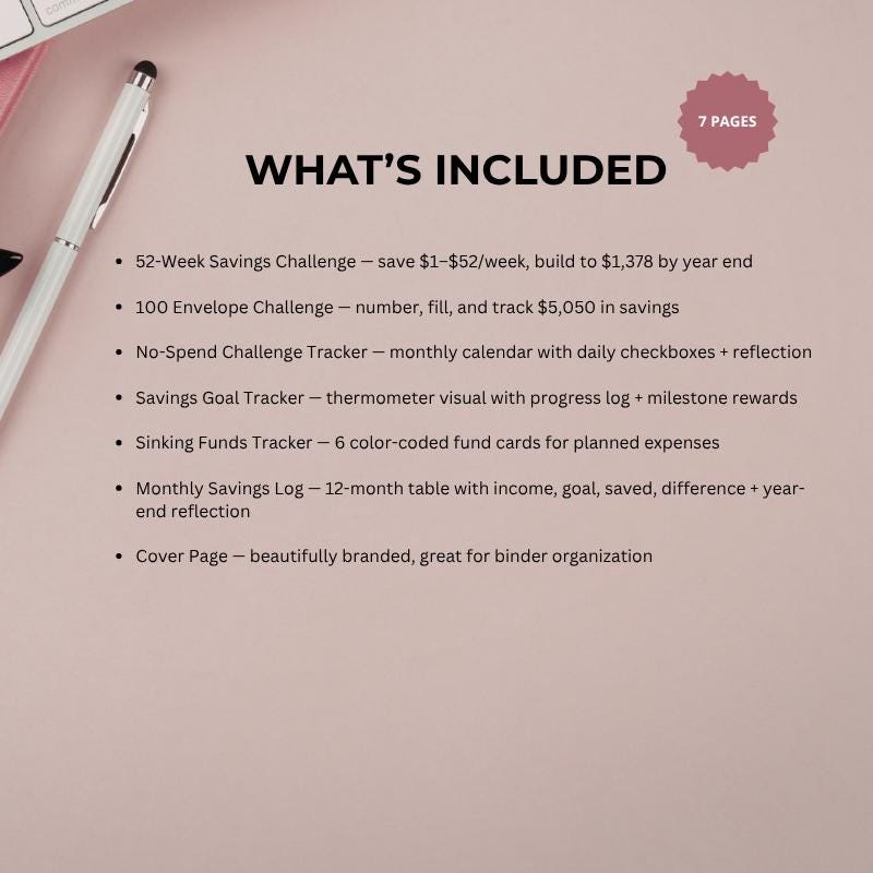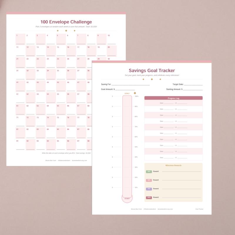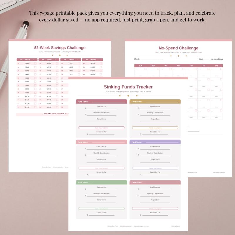 Beautiful, minimal, and built to keep you motivated. This blush + mauve edition of our bestselling Savings Challenge Printable Pack gives you all 7 trackers in a soft palette perfect for your planner, binder, or desk.