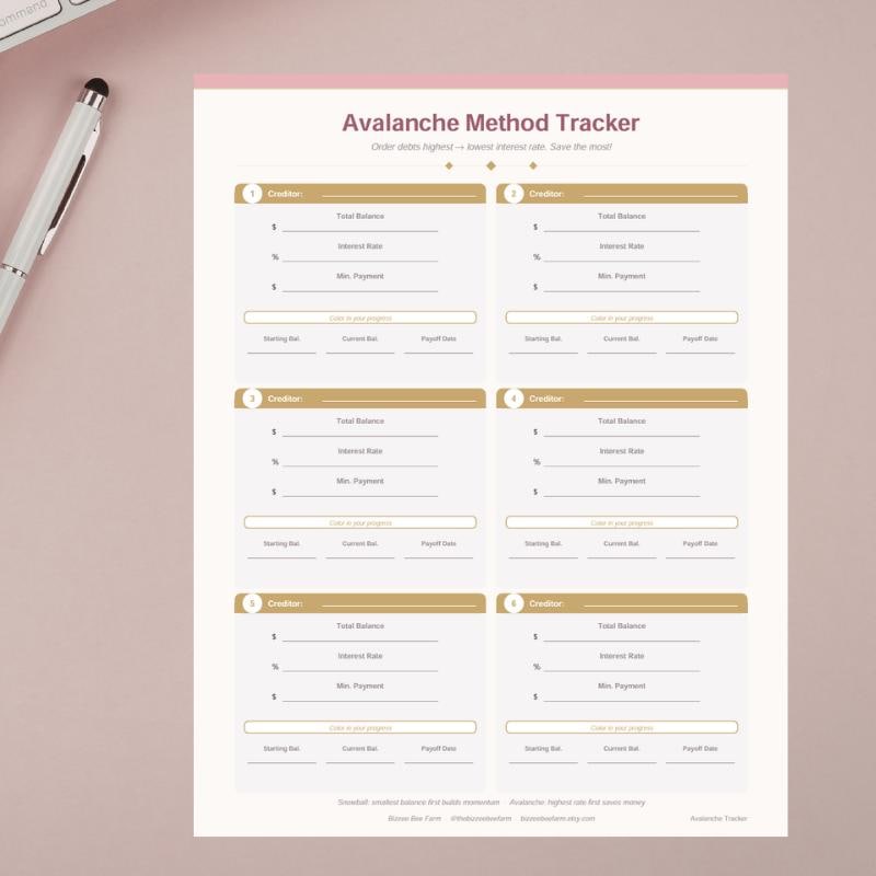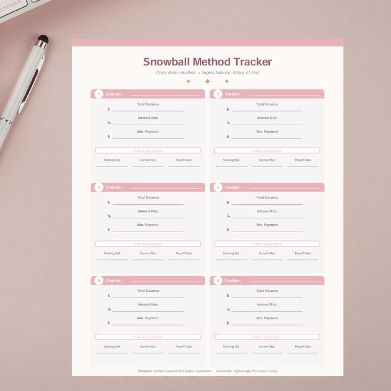 Whether you prefer the Snowball Method (small wins first) or the Avalanche Method (highest interest first), this tracker gives you the structure you need to stay focused and actually see results.