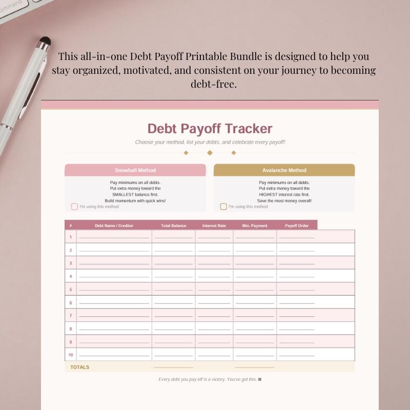 This all-in-one Debt Payoff Printable Bundle is designed to help you stay organized, motivated, and consistent on your journey to becoming debt-free.