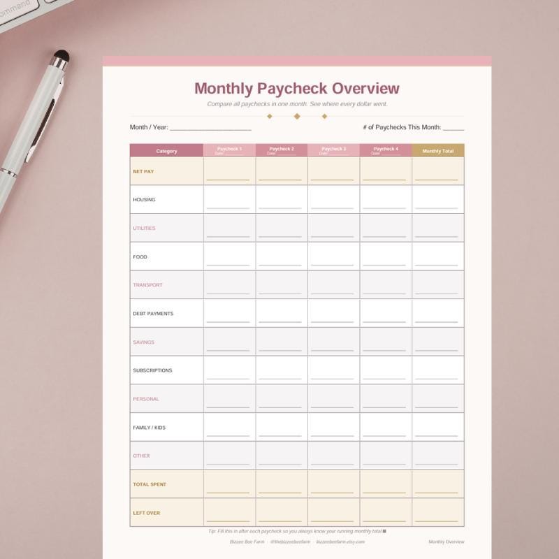 Feel like your paycheck disappears as soon as you get it? This Paycheck Budget Planner + Monthly Overview Printable helps you take control of your money, plan every dollar, and finally break the cycle of living paycheck to paycheck.