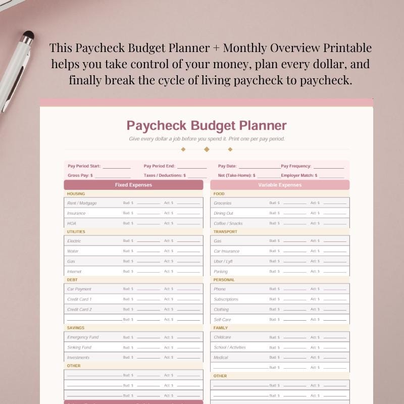 📥 How It Works: Purchase the listing Download instantly from Etsy Print at home or a print shop Start budgeting your next paycheck