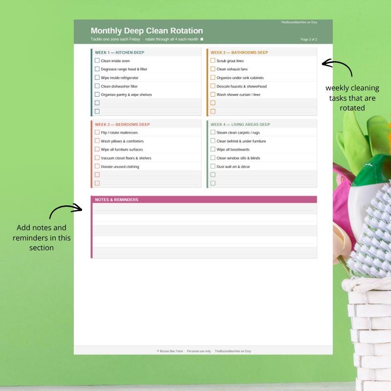 Page 2 — Monthly Deep Clean Rotation + Notes